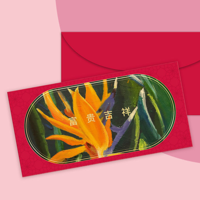 Birds of Paradise combines striking color blocking with a centerpiece of an abstract flower. This design radiates freshness and creativity, epitomizing the union of contemporary flair with traditional themes of prosperity and growth. The artworks are produced by artists from Eden Talent Development Programme (Visual Arts) of Eden Expression. Eden School, an autism specific school provides quality education for students on the autism spectrum, with aims to maximise their potential and transform lives positively.